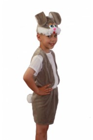 Трусишка, зайка серенький… Почти из новогоднего хита герой серый зайчик. Шорты выше колена, жилетка серого цвета с белой манишкой и красным галстуком-бабочкой, маска-шапочка с длинными ушами и глазкам...